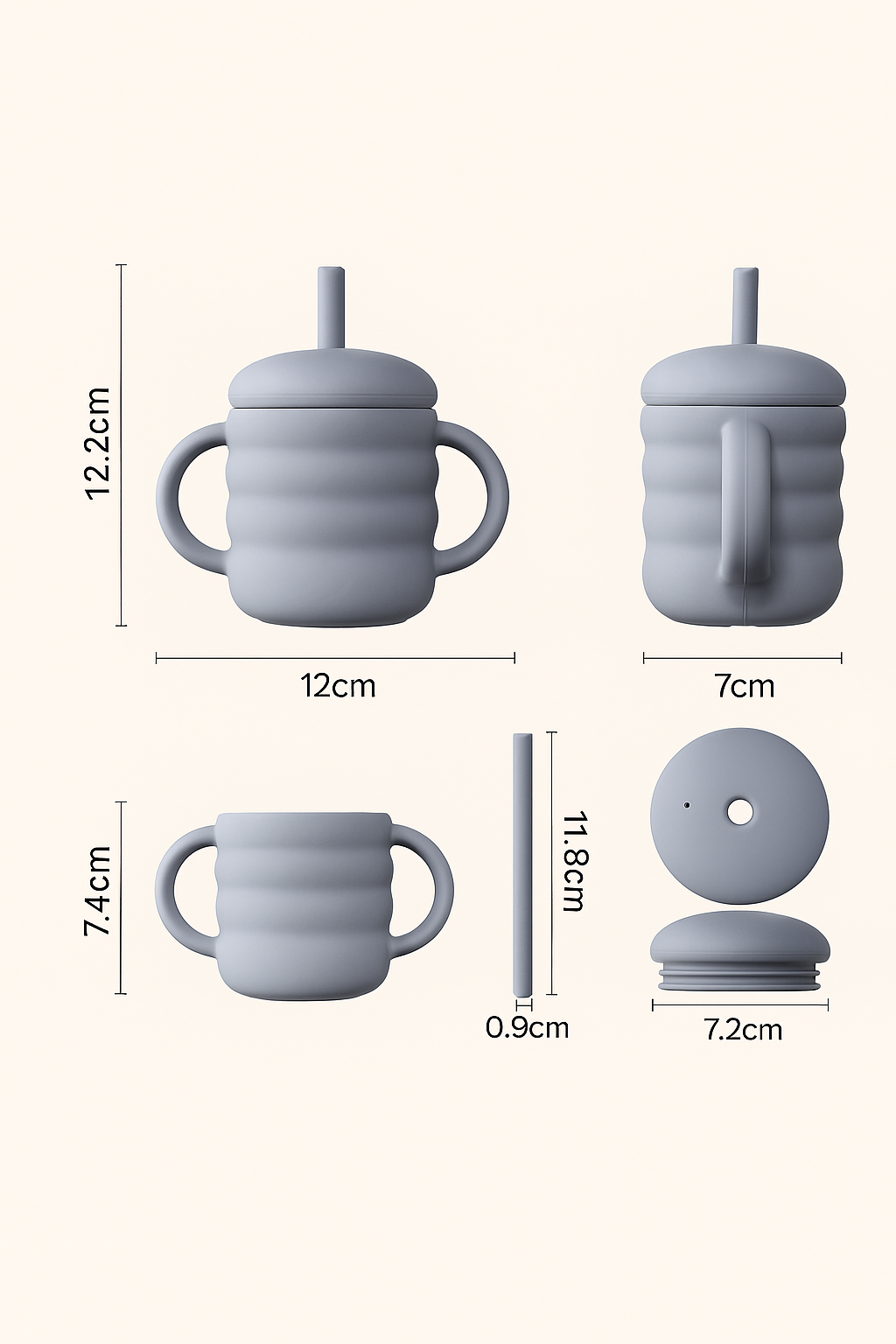 Dieser auslaufsichere Baby-Trinkbecher aus lebensmittelechtem Silikon ist der perfekte Begleiter für Kleinkinder beim Übergang vom Stillen zum selbstständigen Trinken. Mit einem Fassungsvermögen von 120 ml und einem weichen, integrierten Strohhalm unterstützt er sanft die Entwicklung gesunder Trinkgewohnheiten.